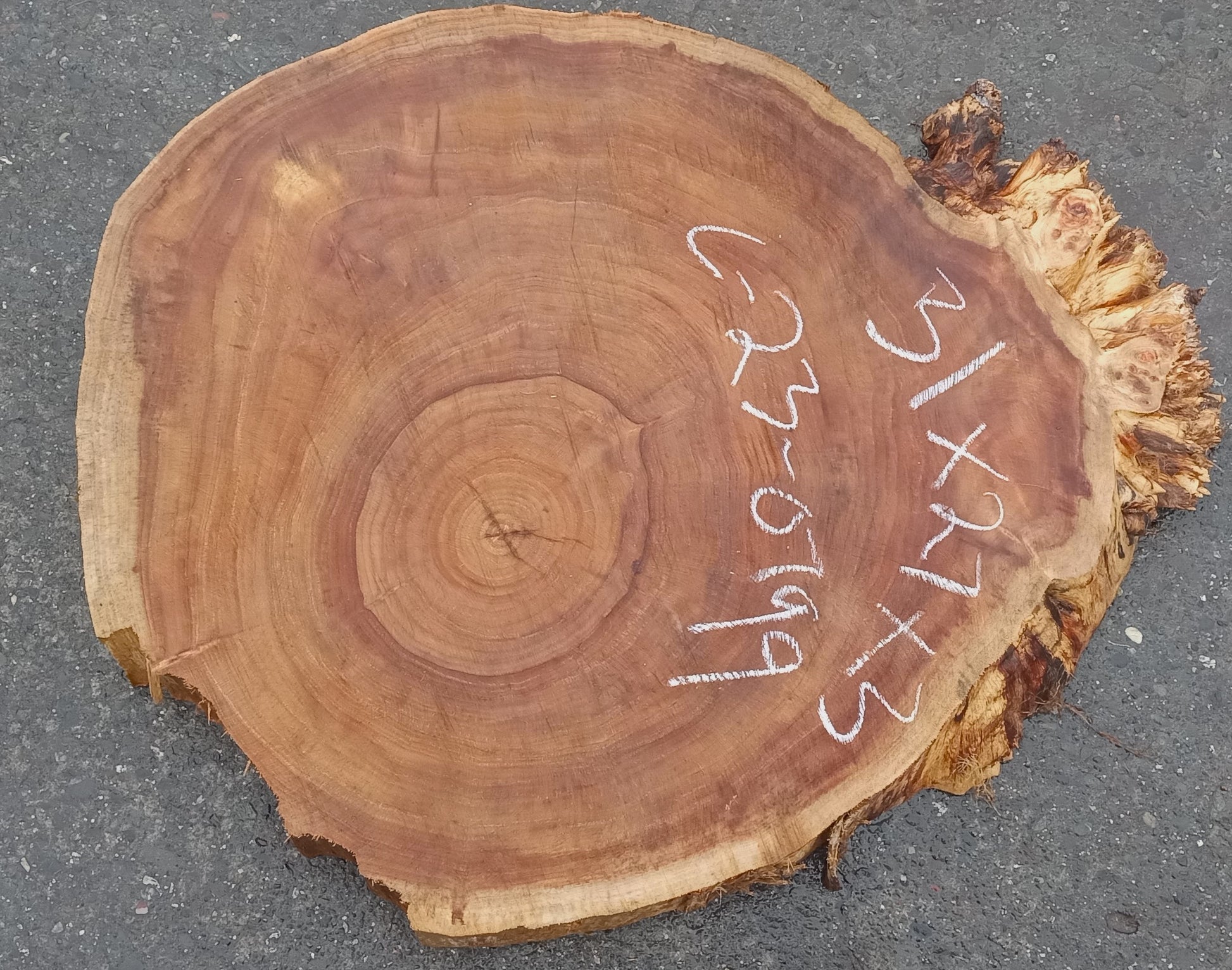 c23-0799 Black Poplar cookie cut slab, cut in Eureka, overall size 31x27x3'' Dead for 2 years. Let this slab acclimate to your area for about 2+ months. Work it, use it but no finish until dry. This sale is for 1 unfinished piece, rough sanded and cleaned up but not finished.