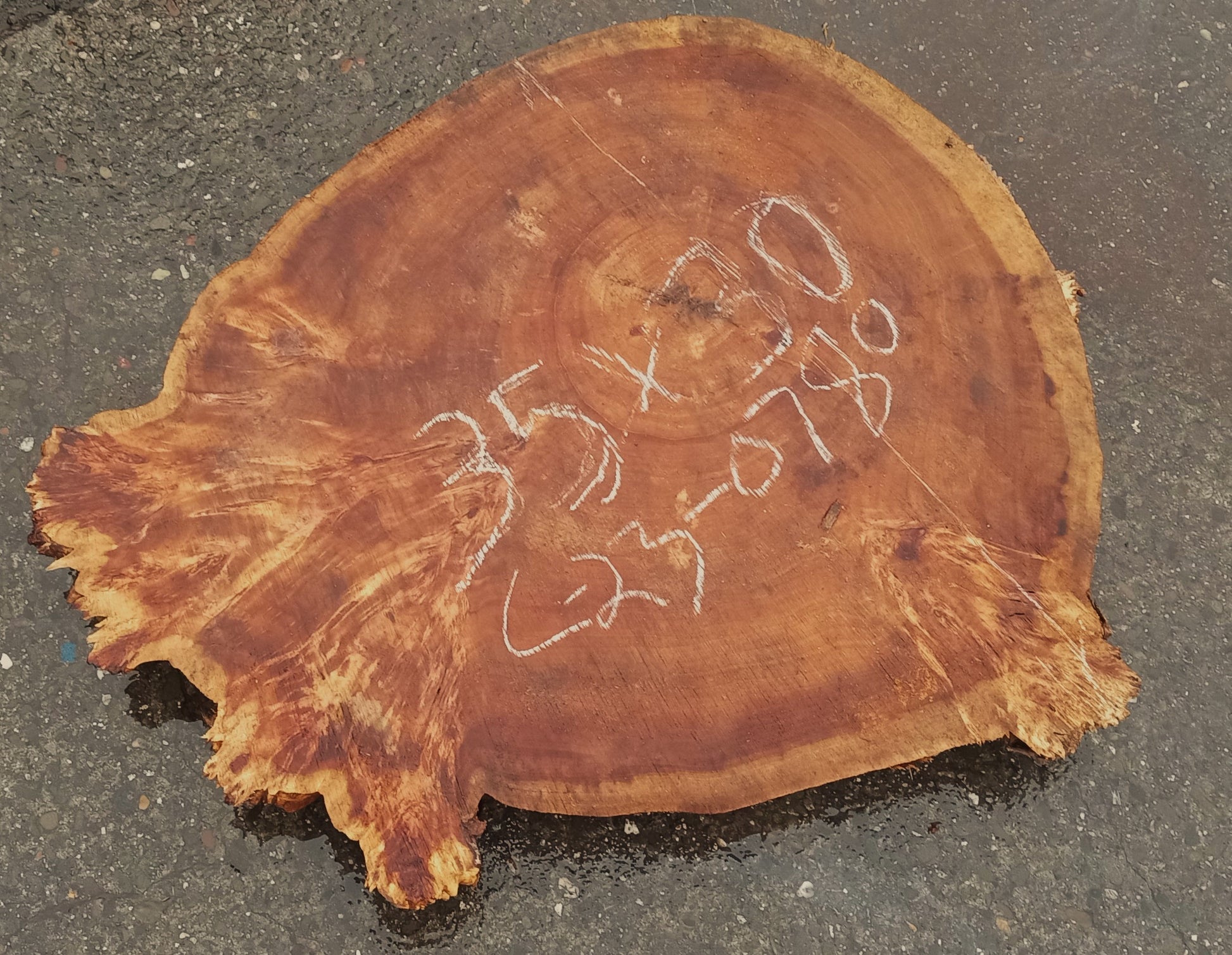 c23-0780 Black Poplar cookie cut slab, cut in Eureka, overall size 35x30x3'' Dead for 2 years. Let this slab acclimate to your area for about 2+ months. Work it, use it but no finish until dry. This sale is for 1 unfinished piece, rough sanded and cleaned up but not finished.
