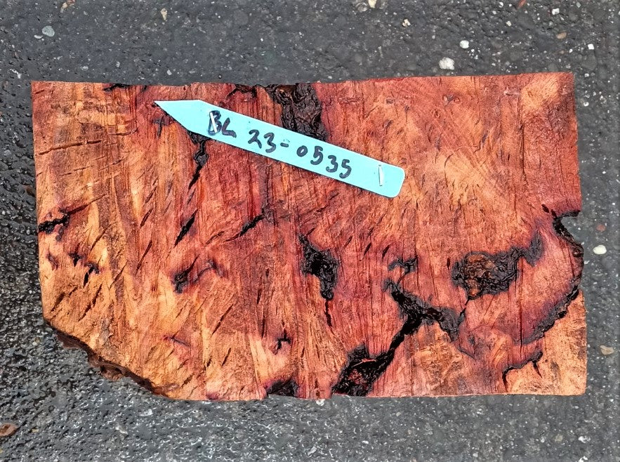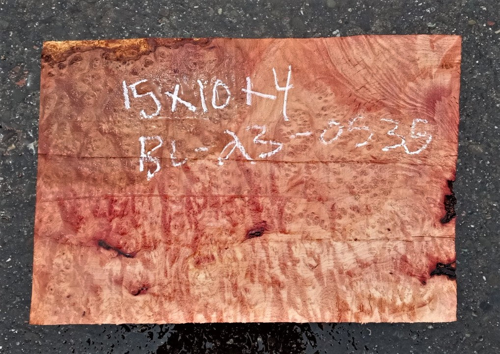 bl23-0311 Madrone burl block cut in Eureka, 15x10x4'' thick. Dead for several years. Let this slab acclimate to your area for about 2to3 months. Work it, use it but no finish until dry. This sale is for 1 unfinished piece, rough sanded and cleaned up but not finished. As in all wild woods watch out for bugs. The lines are from planning it. Ask about this wood if you do not know it.