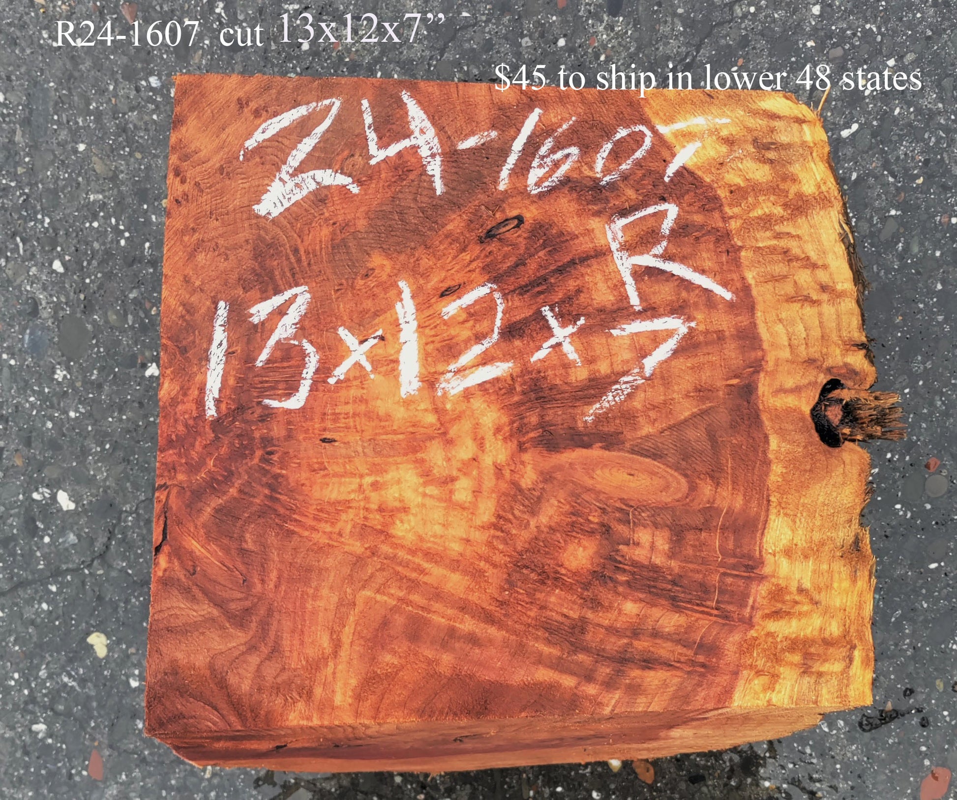 r24-1607 cut to 13x12x7'' Let this slab acclimate to your area for 2+ months. Work it and use it, but do not finish until dry.