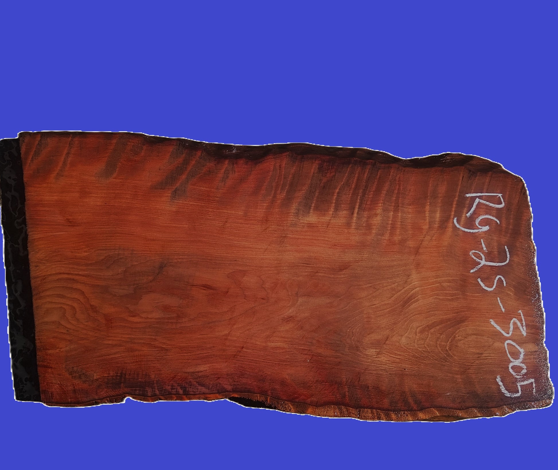 R25-3005 Quilted Redwood cut in Eureka, 25x14x1.75" Dead for several years. Let this slab acclimate to your area for about 2 to 3 months. Work it, use it, but do not finish until dry. This sale is for 1 piece, rough-sanded and cleaned up, but not finished.