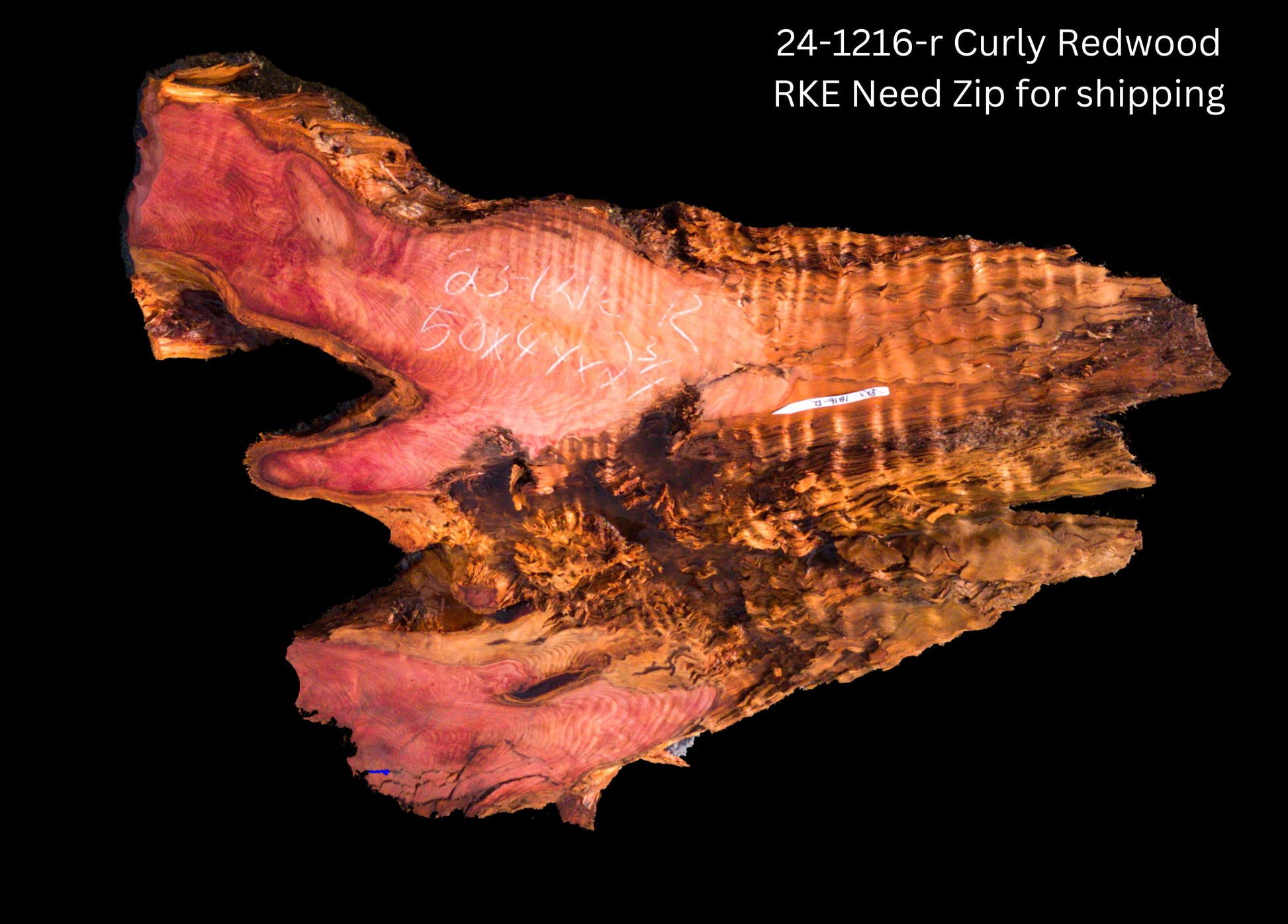 24-1216-r redwood slab, cut 55x44x3.75'' Let this slab acclimate to your area for 3 months. Work it, use it but no finish until dry. Nice for desk, Bar, coffee table, etc.