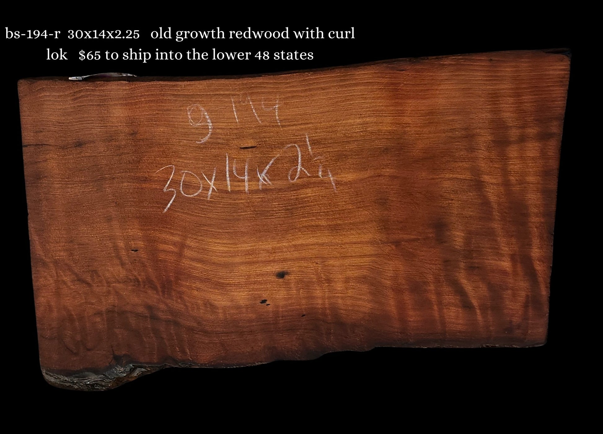 Old Growth | Curly Redwood | Guitar Wood | Craft Wood | bs-194-r
