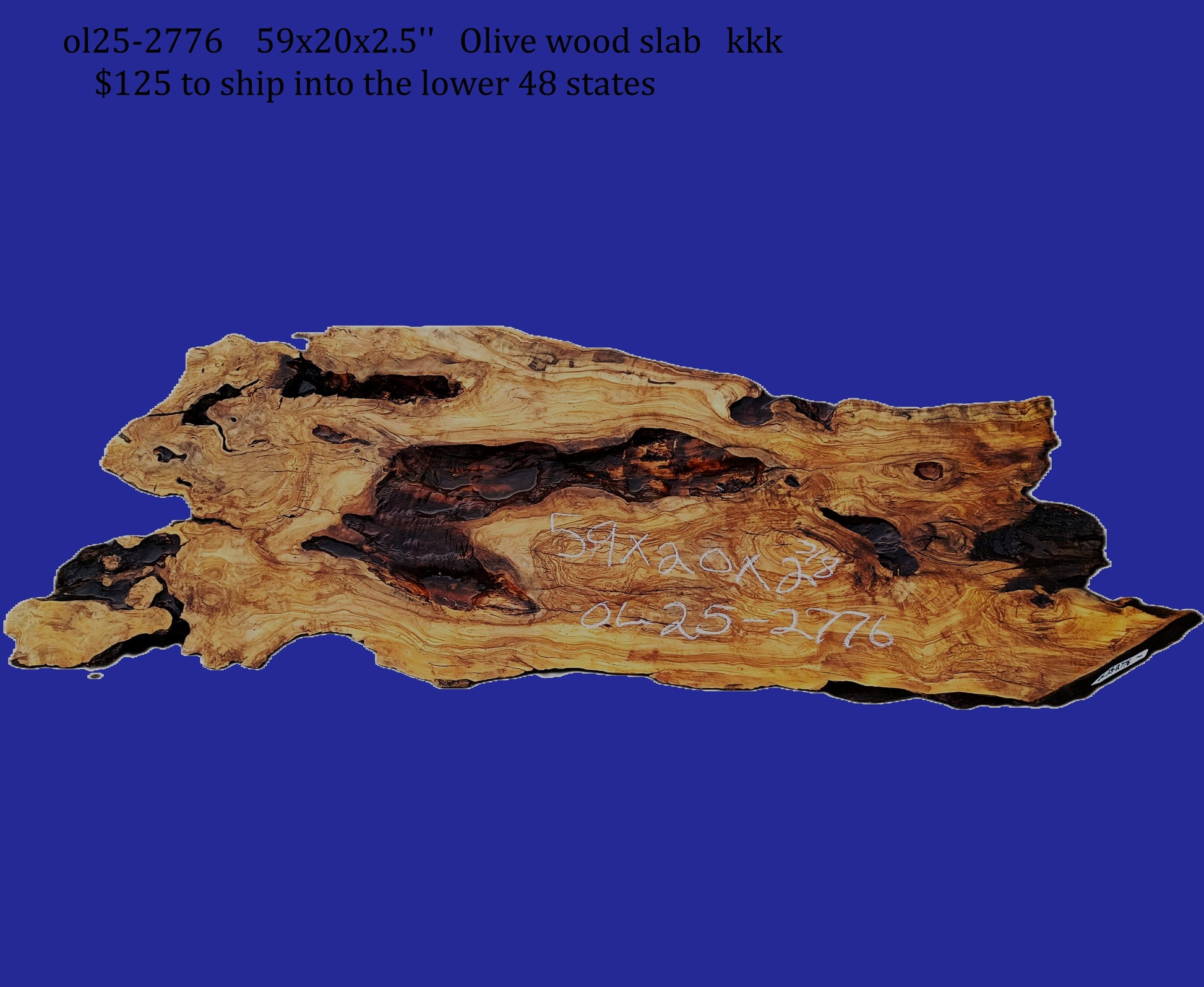OL25-2776 59x20x2.5 ", cut in Eureka. Dried in the Kiln. Let this slab acclimate to your area for about 2 to 4 months. Work it and use it, but do not finish until dry. This sale is for one unfinished piece, rough-sanded and cleaned up, but not finished.