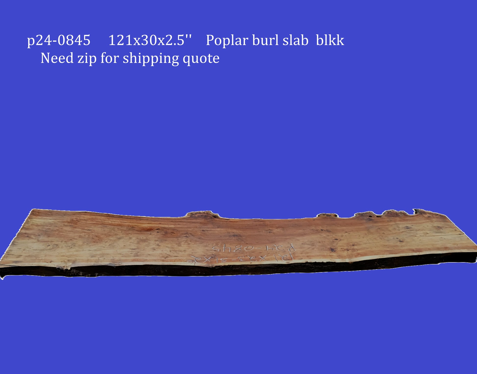P24-0845 Poplar Slab 121x30x2.5". Allow this slab to acclimate to your area for approximately 2 to 3 months. Work it, use it, but don't finish until dry. This sale is for one piece, rough-sanded and cleaned up, but not finished.