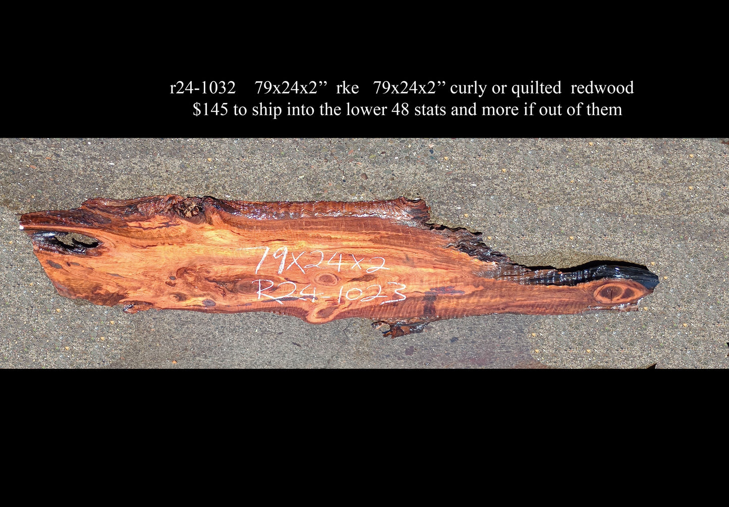 redwood slab R24-1023. Cut to 79x24x2" Let this slab acclimate to your area for about 3 months. Work it, use it, but do not finish until dry. This sale is for 1 unfinished slab, cleaned up and rough sanded. This would make a good table, headboard, bar, etc.