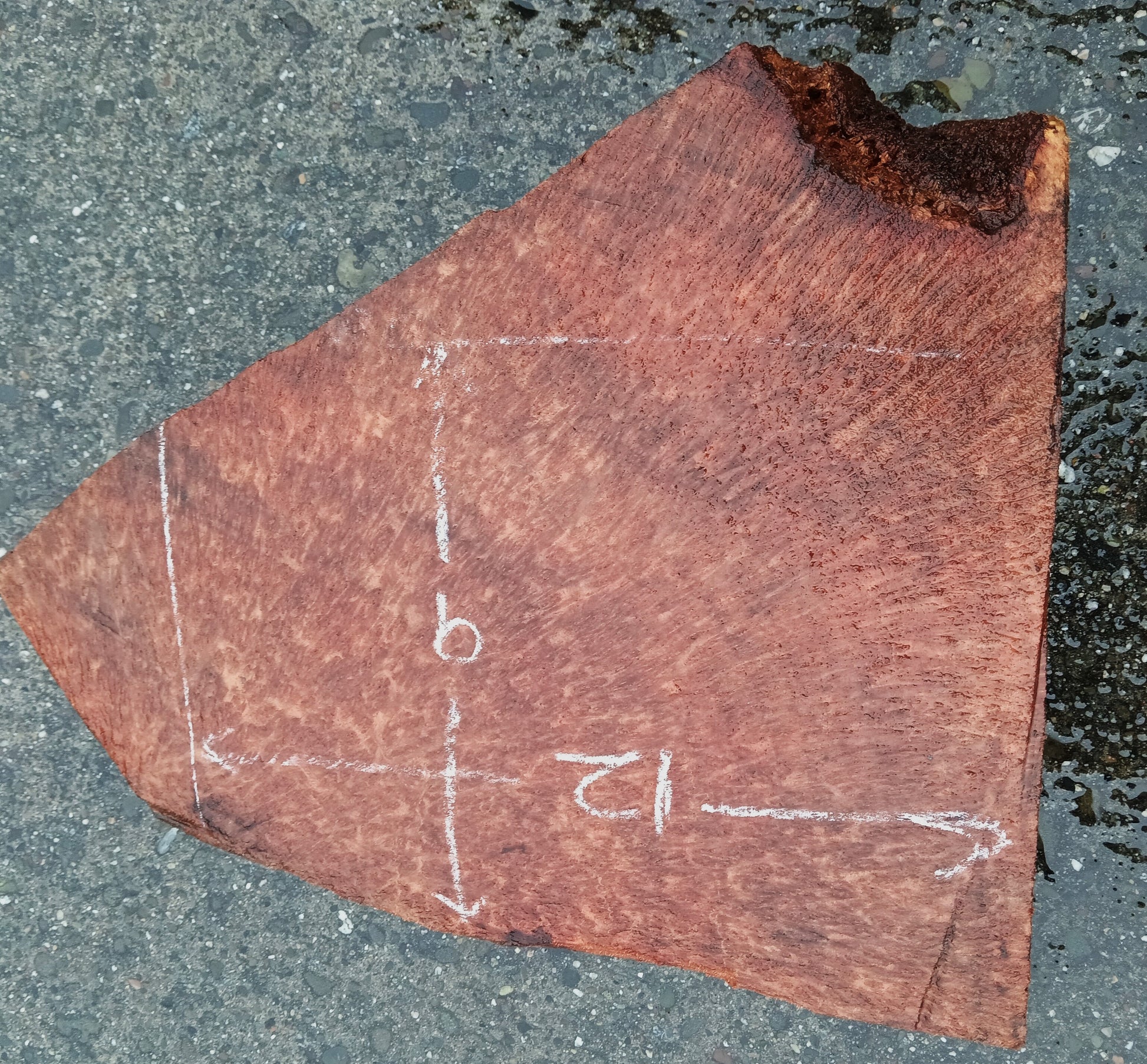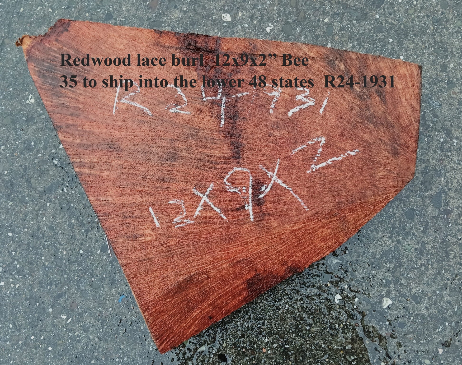 R24-1931 redwood burl Craft Wood Block, cut: 12x9x2''. Let this slab acclimate to your area for 1 - 3 months. Work it, use it, but don't finish until dry.