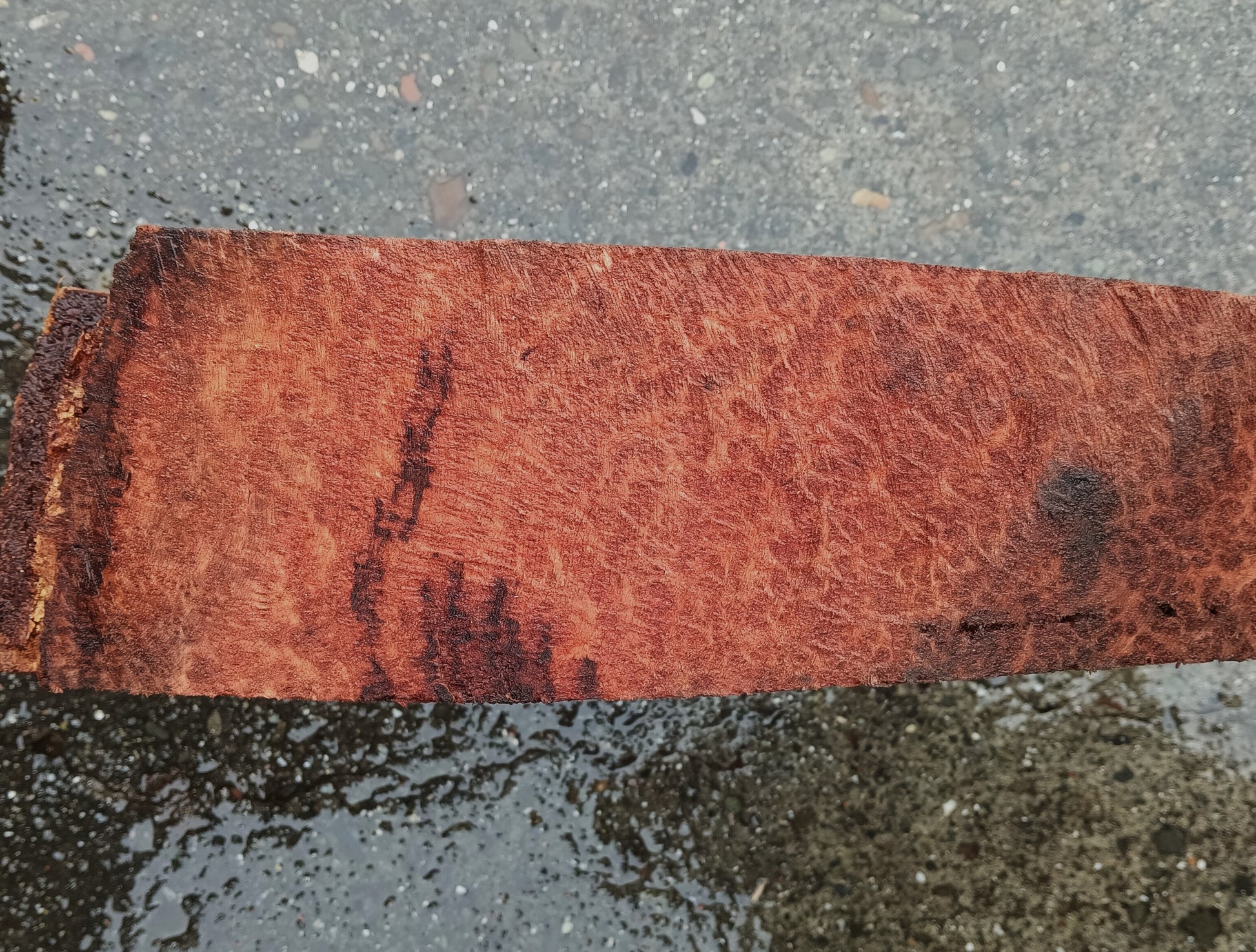 I have over 1000 quilted, curly, burl, and figured grain pieces; mostly Redwood, Myrtle, Maple, and Poplar. As I am on the coast, most pieces are not totally dry. Of course, the best pieces always sell first wet or dry.
