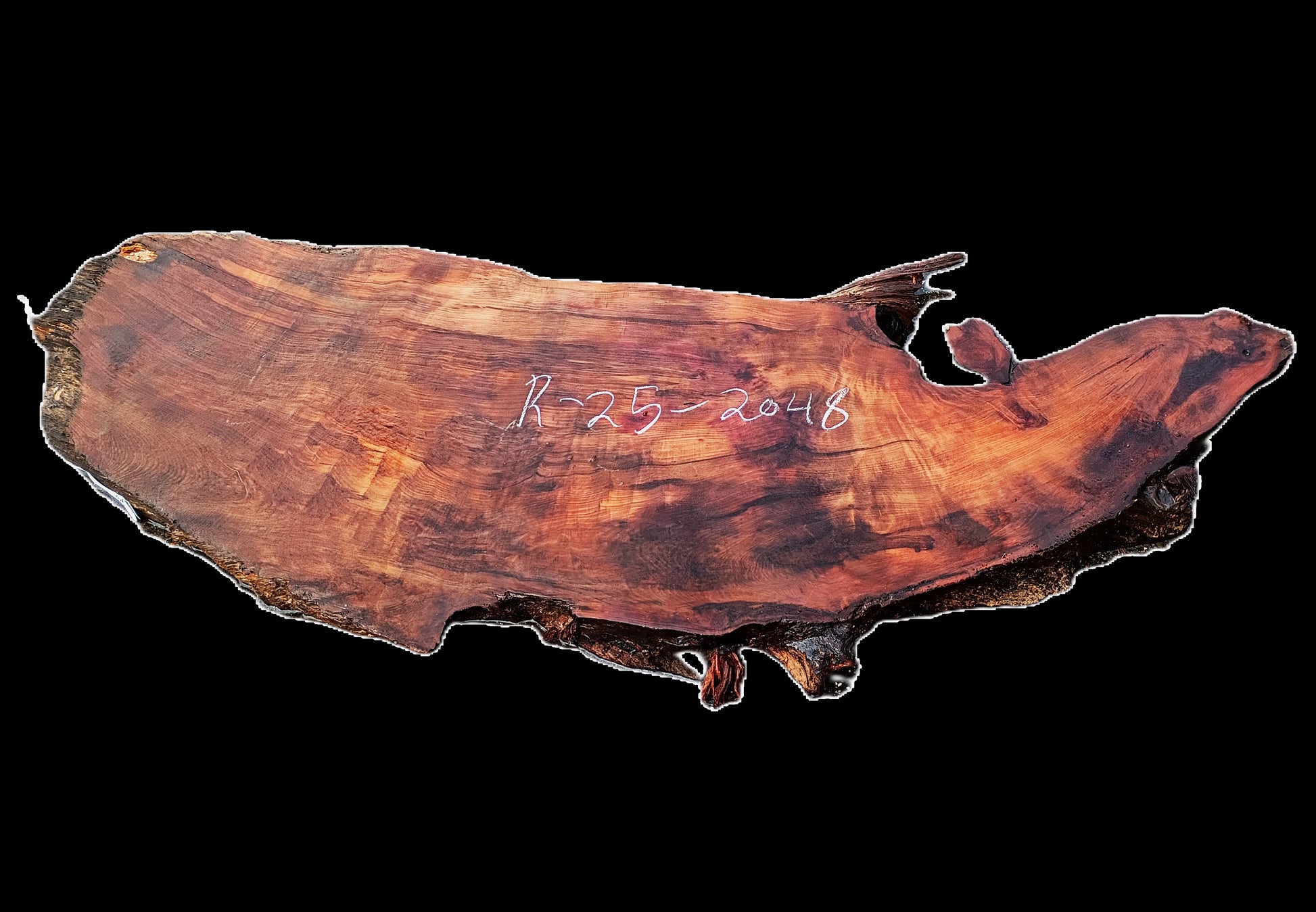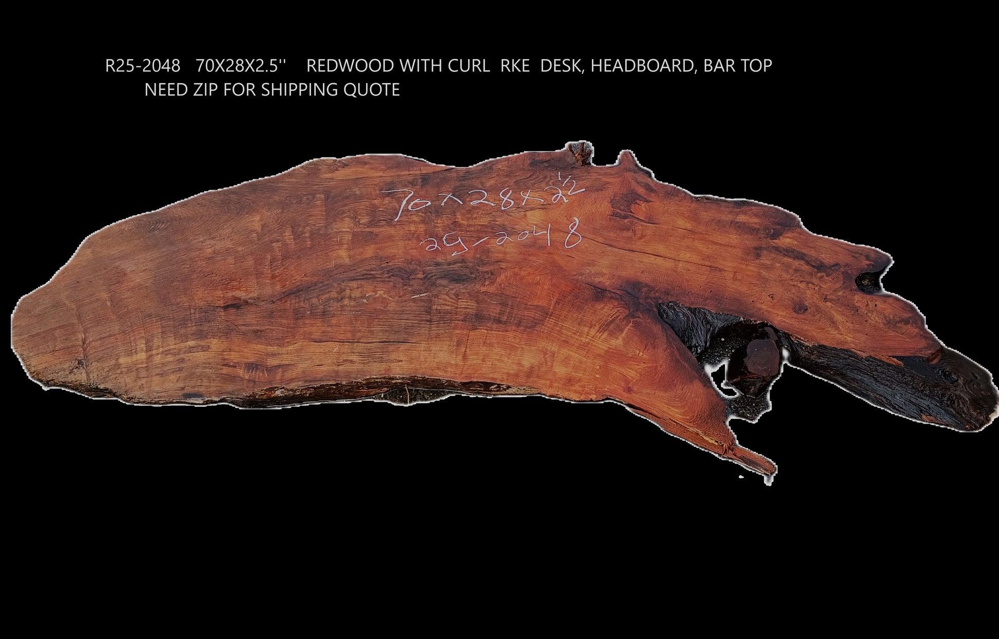 R25-2048 Redwood with Curl Burl | Desk | Headboard | Bar Top cut: 70x28x2.5''. Let this slab acclimate to your area for 2 - 3 months. Work it, use it but do not finish until dry.